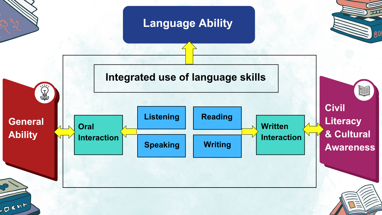 The Mother Tongue curriculum objectives are to develop students’ general ability, civic literacy & cultural awareness alongside the development of the language skills. This is illustrated in the curriculum framework below.